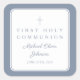 Elegant Dusty Blue Cross Boy First Communion Square Sticker.
