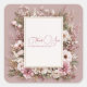 Embrace a world of rustic romance and sophisticated charm with this stunningly beautiful floral thank you sticker. The design features a solid, muted dusty pink background, providing a warm, elegant canvas. A lush, realistic bouquet of flowers in a soft, sophisticated palette of dusty pink, pale blush, and cream beautifully frames a central panel. The arrangement is rich with texture, featuring detailed chrysanthemums, delicate anemones, and soft roses, all interwoven with dried botanicals and dusty sage green foliage. At the center, a crisp, off-white, paper-textured rectangle provides a classic space for your message. This panel is enclosed by a minimalist, thin double-line gold border, adding a final touch of understated elegance. These stickers are perfect for businesses with a rustic, romantic, or boho-chic aesthetic, such as boutique florists specializing in dried arrangements, wedding planners with a natural theme, artisan soap makers, bridal boutiques, or fine art photographers for their client packaging. This versatile design can also be used to beautifully seal envelopes for bridal showers, weddings, or baby showers, or as a sophisticated accent on party favors and gift wrapping.