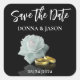Sticker Carré Élégant Enregistrer la date Script White Rose Or C