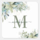 Sticker Carré Élégant Eucalyptus Vert Monogramme Floral