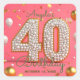 Sticker Carré Elégant Glam Chic Pink Gold Pearly 40th Birthday