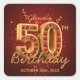 Sticker Carré Elegant Gold and Ruby Red 50th Birthday Party