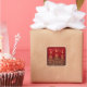Elegant Merry Christmas / Happy Holidays "Sticker Seal" Gold Trees with bows on red.