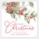 Sticker Carré Elegant Holly Berries et Pine Cones Noël