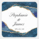 Sticker Carré Élégant Mariage d'agate d'or bleu