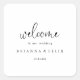 Cet élégant autocollant de carré d'accueil mariage de script élégant est parfait pour un mariage rustique. Le design sobre et élégant présente une typographie de script classique et sophistiquée en noir. Ces étiquettes sont parfaits pour les sacs de bienvenue et les mariages de destination des clients de l'hôtel.
