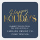 Autocollant moderne minimaliste de vacances d'affaires avec élégant script calligraphie lisant HAPPY HOLIDAYS en or imprimé. Vous trouverez ci-dessous un espace pour votre message personnalisé ainsi qu'un espace supplémentaire sur le dos de votre logo d'entreprise. C'est la version bleu foncé.