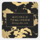 Sticker Carré Élégant motif floral or noir