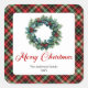 Sticker Carré Elegant Red Green Plaid Pine Wreath Holiday Labels