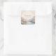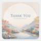 Transport your brand to a realm of serene, painterly beauty with this elegant sticker. The design features a stunning, artistic landscape rendered in a soft, muted color palette. A tranquil river winds its way through a peaceful valley, reflecting a soft, hazy sky. The banks are adorned with beautifully painted trees and bushes blooming in delicate shades of dusty pink, coral, soft blue, and pale golden yellow. Distant, misty blue mountains add depth to the serene scene. The entire composition is set against a warm, subtly textured beige background and enclosed by a minimalist, thin, textured gold circular frame, creating a sophisticated and tranquil focal point. This design is perfect for businesses that evoke tranquility, artistry, and natural beauty, such as wellness centers, meditation guides, fine art studios, boutique travel agencies specializing in scenic destinations, or elegant event planners. This versatile design can also be used to beautifully seal envelopes for weddings, showers, or sophisticated events, or as a graceful accent on party favors and gift wrapping.