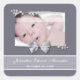 Sticker Carré Élégant ruban Faire-part de naissance photo argent