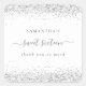 Elégant Silver Parties scintillant Nom Sweet 16 Merci. La fausse parties scintillant borde le haut et le bas, avec votre nom et merci et un script de style manuscrit pour l'occasion. Personnalisez facilement le texte à vos propres détails.