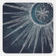 Sticker Carré Elégant Silver Sun Moon Doodle Mandala Blue Design