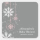 Sticker Carré Élégant Snowflakes Carré Baby shower rose et gris