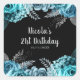 Sticker Carré Elegant Teal Blue and Silver Flower Birthday Party