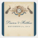 Deux paons élégants sont perchés sur un beau décor orné de bleus, d'or et de marron. Parfait accent pour votre mariage à thème paon, douche ou anniversaire. Les couleurs accentées d'or et de blues sont profondes et riches.