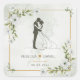 Sticker Carré Elegant White Floral Bride and Groom Wedding