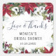 Sticker Carré Elégante aquarelle FÊTE DES MARIÉES rouge Poinsett