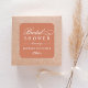 Autocollant de douche mariage en terre cuite orangée, design de style original, avec une belle typographie qui combine un script de calligraphie fleuri traditionnel avec des lettres de bloc classiques. Comprend un accent décoratif design de défilement. Le texte personnalisé peut être personnalisé avec le nom de la mariée. Veuillez acheter notre collection Classic Elegant Terracotta Orange Mariage Collection pour coordonner les conceptions.
