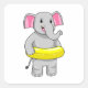 Sticker Carré Eléphant à nager avec Lifebuoy