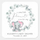 Un autocollant mignon pour vos invitations à la douche pour bébé fille, des cartes de remerciement et des faveurs de fête avec "A Sweet Little Peanut Is On Her Way" dans un mélange de typographie moderne et un script élégant avec un coeur swash et une aquarelle d'un bébé éléphant rose dans une couronne de vert d'eucalyptus sauge. Personnalisez avec le nom de la future mère et la date de la douche.