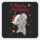 Sticker Carré Eléphant Noël Neige Hiver Animaux Eléphants