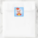 Sticker Carré Elfe de Noël mignon et texte personnalisé sur bleu