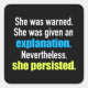 Elle a été prévenue. On lui a donné une explication. Néanmoins, elle a persisté. Une citation forte soutenant Elizabeth Warren et ses efforts pour laisser les voix des démocrates se faire entendre au sénat. N'arrêtez jamais de croire au progrès.