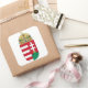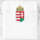 Armoiries de Hongrie. Les armoiries actuelles de la Hongrie ont été adoptées le 3 juillet 1990, après la fin du régime communiste. Les armes ont été utilisées auparavant, avec et sans la Sainte Couronne de Hongrie, parfois dans le cadre d'une armoirie plus grande et plus complexe, et ses éléments remontent au Moyen Âge. Le bouclier est divisé en deux parties : la sinistre (à droite du point de vue des spectateurs) est constituée d'une croix double en argent sur la base rouge, située à l'intérieur d'une petite couronne dorée, la couronne est placée sur le tas central de trois collines vertes, représentant les chaînes de montagne Tátra, Mátra, et Fátra ; le dextre (à gauche du point de vue) présente les bandes Árpád, quatre et quatre rayures rouges. Traditionnellement, les bandes argentées représentent quatre rivières : Duna (Danube), Tisza, Dráva et Száva.