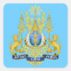 Armoiries royales du Cambodge. Les armoiries royales du royaume du Cambodge sont le symbole de la monarchie cambodgienne. Elles existent sous une forme ou une autre proche de celle décrite depuis la création du Royaume indépendant du Cambodge en 1953. C'est le symbole de la Norme Royale du monarque au pouvoir au Cambodge. Les armoiries sont représentées par deux animaux qui sont un gajasingha (un lion avec un tronc d'éléphant) à gauche, et un rajasingha (un lion royal) à droite. Les animaux sont soutenus par deux parapluies royaux à cinq étages représentant le roi et la reine. Entre les deux se trouve une couronne royale avec un diamant brillant au sommet. Sur un champ bleu clair sous la Couronne se trouve un signe Unalome (version khmer-thaïe du symbole Aum) au-dessus d'une épée sacrée, qui repose sur deux phans empilés (plateaux à guéridon). La phrase en khmer sur la bannière sous les bras royaux se traduit par : Preah Chao (souverain royal ou auspicieux) - Krung (région, ou dans ce coque, royaume) - Kampuchea (Cambodge) : "Roi du Royaume du Cambodge".