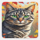 Sticker Carré Emerald Gaze Tabby in Autumn Glow