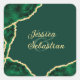 Sticker Carré Emerald Green & Gold Agate Mariage élégant