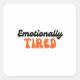 A bold and illustrative design featuring the phrase "Emotionally Tired." The word "Emotionally" is in a groovy, script-like black font with a white outline, while "TIRED" is in a large, chunky, orange bubble/psychedelic font. This design has a fun, retro, 70s vibe, contrasting the heavy sentiment with a playful aesthetic. Perfect for apparel, stickers, mugs, or print-on-demand products for anyone feeling overwhelmed or expressing a state of mental exhaustion in a stylish way.