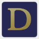 Lettre majuscule d'or D en police de bronze faux or. Aspect métallique réalisé à l'aide de tons clairs et d'ombres dans les tons jaune, marron et gris. Placez-vous sur un bleu foncé et customisez avec la couleur arrière - plan de votre choix.