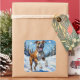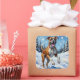 Sticker Carré Energetic Boxer Dog Leaping in Winter Snow Fun
