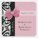 Un élégant style parisien rose et noir sauve la carte postale datée avec damas noir et blanc tendance et un ruban rose ceinturon enroulé autour d'un arrière - plan en dentelle rose féminin. Personnalisez en ajoutant le nom de la mariée et du marié et la date de leur mariage. Rappels parfaits le jour du mariage