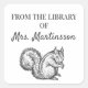 Sticker Carré Enseignant D'Écureuil Blanc Noir De La Bibliothèqu