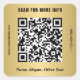 Un autocollant en or de code QR simple et moderne pour votre entreprise ou organisation. Ajoutez votre code QR scannable et customisez jusqu'à quatre lignes de texte avec votre nom, slogan, slogan, slogan, site Web, numéro de téléphone, etc., ou supprimez.