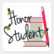 Pile de livres avec un crayon penché contre eux. "Honor Student" en script. Les Arrière - plans sont de couleurs différentes