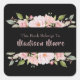 Sticker Carré Ex-libris de roses florales jolies avec nom inscri