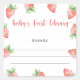 Carton d'invitation pour une baby shower mignon avec une illustration aquarelle de fraises. Le texte dit "un bébé bien sucré arrive". Articles assortis disponibles.
