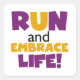 Si vous aimez courir, courir 5Ks, 10Ks, demi-marathons ou marathons, vous adorerez ce texte coloré en violet et jaune qui lit Run and Embrace Life! Courez et Embrace Vie T-shirts, sweat - shirts à capuche, magnets, boutons, cartes, autocollants, porte - clés, et beaucoup d'autres articles pour les coureurs qui aiment un design de course brillant et coloré!
