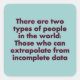 On peut y lire : "Il y a deux types de personnes dans le monde : celles qui peuvent extrapoler à partir de données incomplètes"