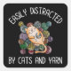 Sticker Carré Facilement Distrait Par Les Chats Et Les Fils