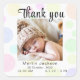 Sticker Carré Faire-part bébé, Merci, Script Classic Round