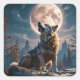 Sticker Carré Fantasy Mignonne Loup hurlant vers la lune