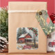 A rustic farmhouse stickers for crafts and gifts. This farmhouse reminds one of weathered wood, plaid ribbons, wooden ornaments, galvanized buckets, pine garlands, antique sleigh bells, and warm candle glow. Nostalgic, cozy, vintage vibes are just right for the celebration of Christmas. The text can be personalized.