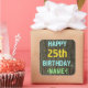 Ce design amusant d'autocollant sur le thème de l'anniversaire comporte un message comme "HAPPY 25th BIRTHDAY,<NAME>!", où le nom peut être personnalisé. L'arrière - plan présente un motif rustique, brun, imitation bois de grain. Le texte du message personnalisé présente des couleurs comme le bleu, le jaune et le vert, et il a un aspect inspiré de celui du lettrage peint et recouvert de pochoirs. Des autocollants comme ceux-ci pourraient peut-être être offerts en cadeau, ou être utilisés comme décorations lors d'une fête d'anniversaire organisée pour quelqu'un qui célèbre son vingt-cinquième anniversaire. [~Z0000296]