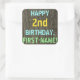 Sticker Carré Faux Wood, Peint Texte Look, 2e anniversaire + Nom