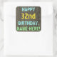 Ce design amusant d'autocollant sur le thème de l'anniversaire comporte un message comme "HAPPY 32nd BIRTHDAY, NAME-HERE !", où le nom peut être personnalisé. L'arrière - plan présente un motif rustique, brun, imitation bois de grain. Le texte du message personnalisé présente des couleurs comme le bleu, le jaune et le vert, et il a un aspect inspiré de celui du lettrage peint et recouvert de pochoirs. Des autocollants comme ceux-ci pourraient peut-être être offerts en cadeau, ou être utilisés comme décorations lors d'une fête d'anniversaire organisée pour quelqu'un qui célèbre son trente-deuxième anniversaire. [~Z0000296]